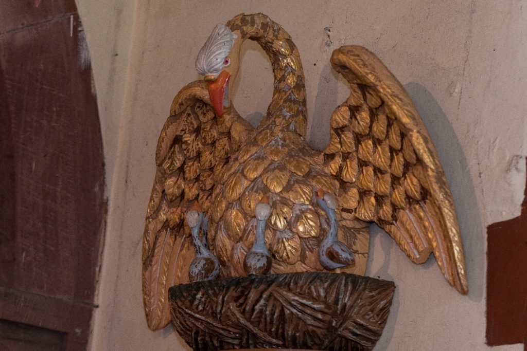 I’r chwilfrydig mae yna rai nodweddion diddorol fel y cerflun o’r pelican yn bwydo ei phlant, a ydych chi’n gwybod y stori am sut y cafodd hyn ei fabwysiadu fel symbol Cristnogol? Neu seddau Plas Drew o’r 18fed ganrif, dychmygwch yr arglwyddi a’r merched yn eu dillad, gydag adran llenni y tu ôl i eistedd eu gweision – byd gwahanol iawn!