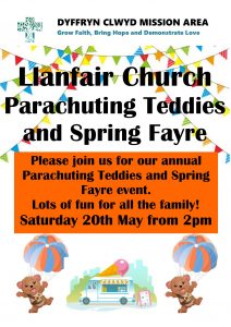 A big call out for volunteers! Anyone wishing to attend will receive a very warm welcome, and volunteers are always hugely appreciated so if you have a couple of hours to spare, please contact Mair Ansell on 01824 790 726 / mairansell@aol.com or Rev Natasha on email natashaquinn-thomas@churchinwales.org.uk.