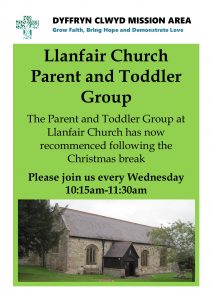 Every Wednesday 10:15am – 11:30am at Llanfair DC Church.