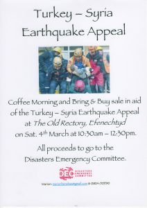Attached is a poster to advertise a coffee morning, and bring and buy event to raise funds which will be sent to the Disasters Emergency Committee.