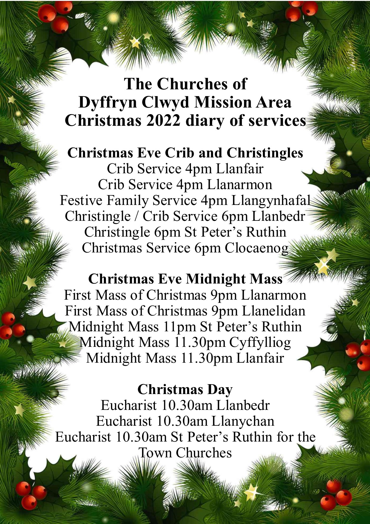 Please also hold our clergy and MAC members in your thoughts and prayers as they meet on Saturday 3rd December to discuss the vision of a future team of ministry for Dyffryn Clwyd.